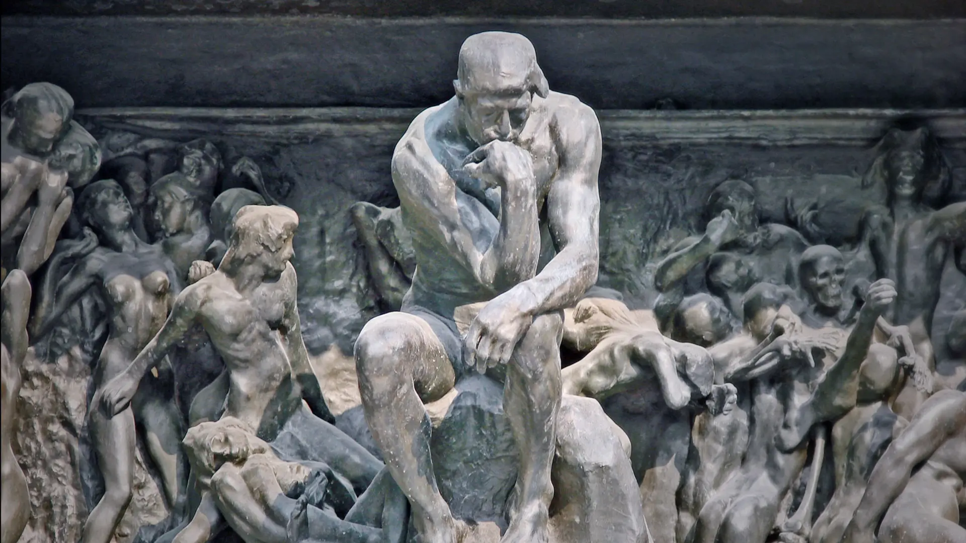 五世紀後,現代雕塑奠基者羅丹(Auguste Rodin,1840-1917),深受《神曲·地獄篇》啟發,鑄成不朽的青銅巨作《地獄之門》;《地獄之門》龕楣中央手托下頷者,後來被羅丹獨立創作為家喻戶曉的《沉思者》。