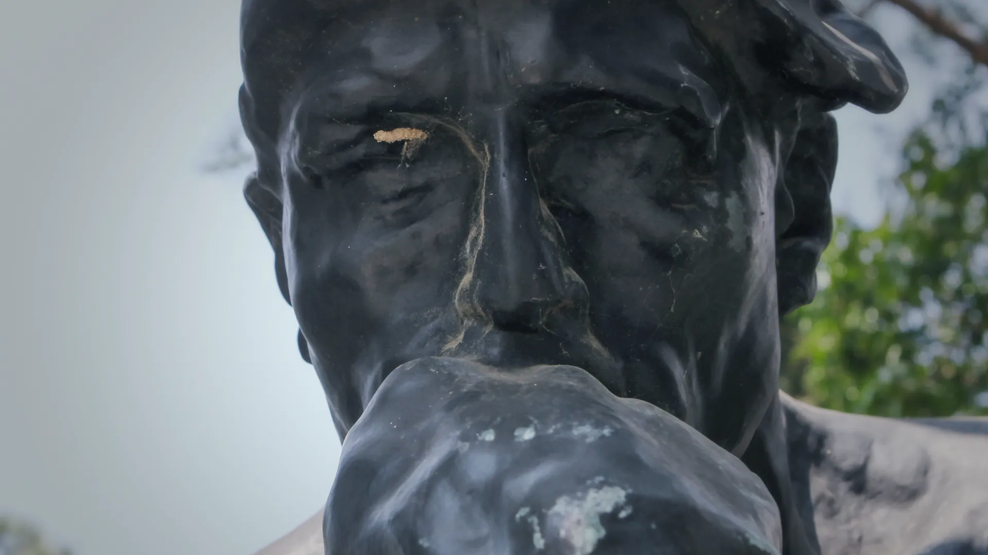 《沉思者》長期暴露於無遮蔽之開放空間,受氣候變遷、日照、降雨及空氣污染等環境因子影響,表層已出現由氯化亞銅與鹼式氯化銅構成之青銅病變痕跡。此外,雕像表面亦附著蛛網、昆蟲繭殼等生物性殘留物,以及大量塵垢堆積,影響保存狀況與視覺完整性。