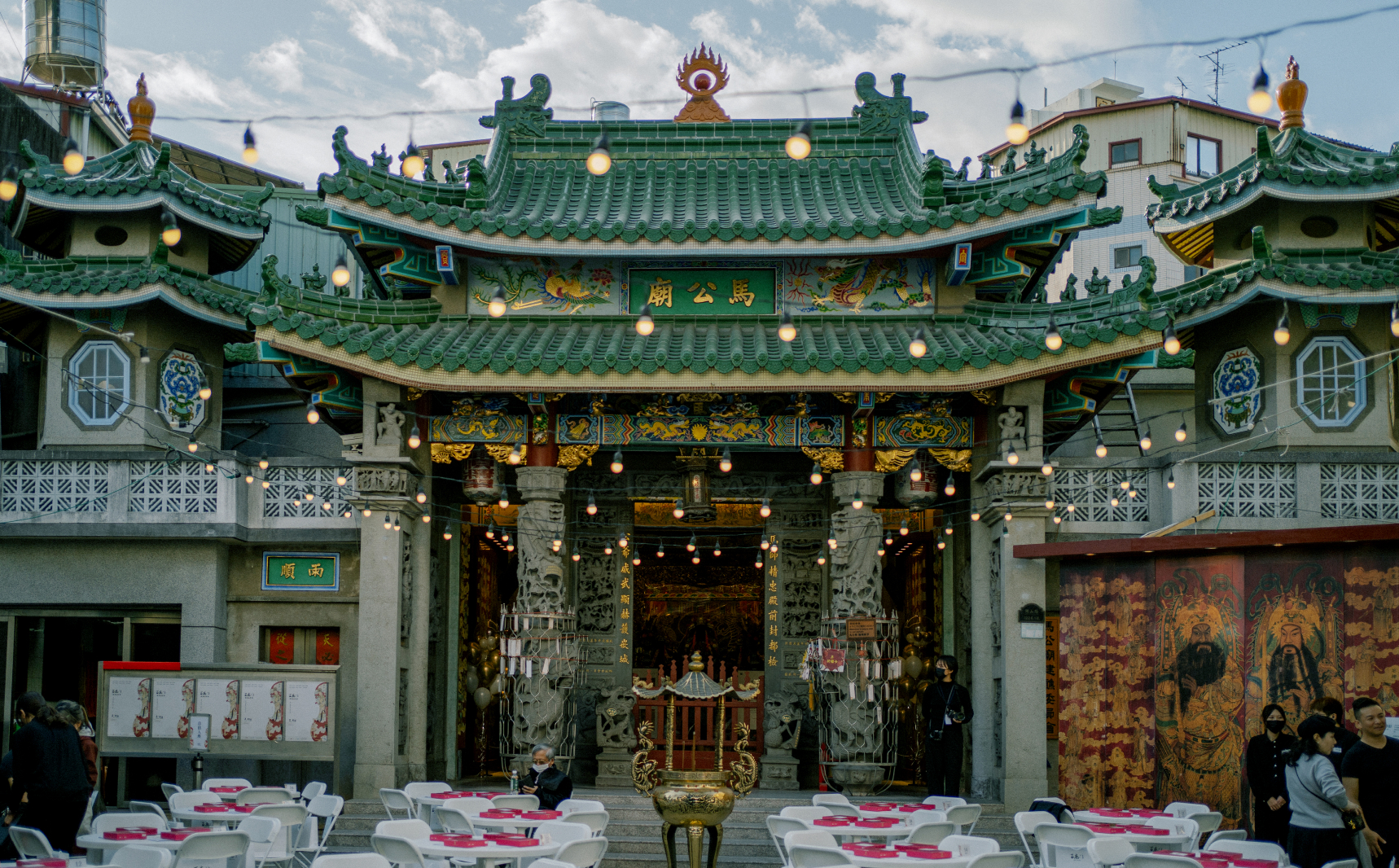 馬公廟座落於繁華的開山路及府前路交匯,其樞紐位置見證府城歷史風華。廟方於1970年代,力邀臺灣廟宇彩繪大師潘麗水繪製六扇門神。